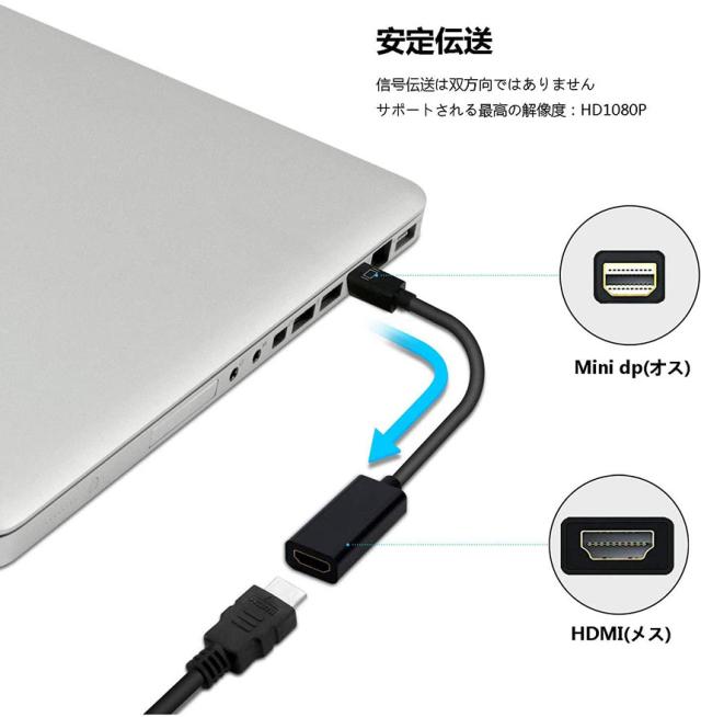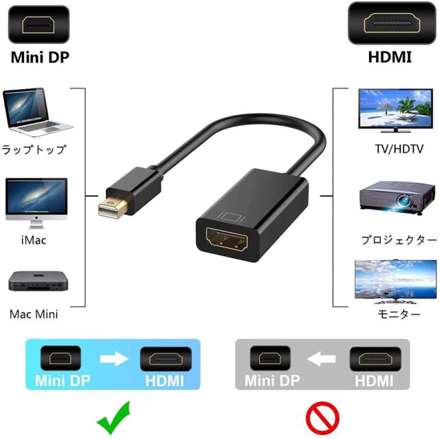 Mini DisplayPort から HDMI 変換アダプター MiNi DP Thunderbolt to HDMI 変換アダプタ 1080P Full HD Macbook Surface Apple iMac Air対応