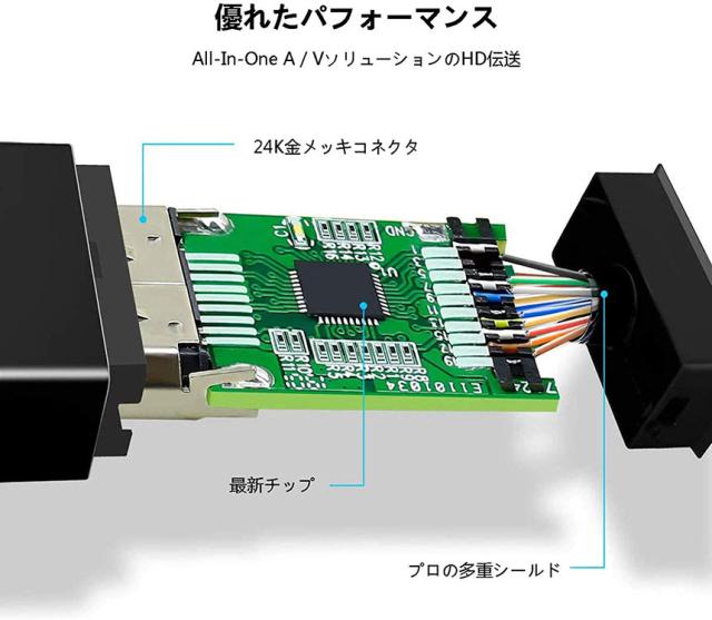 耐久性:耐腐食性と耐久性がある金メッキコネクタを採用して、経年変化による信号劣化の心配が少ないです。