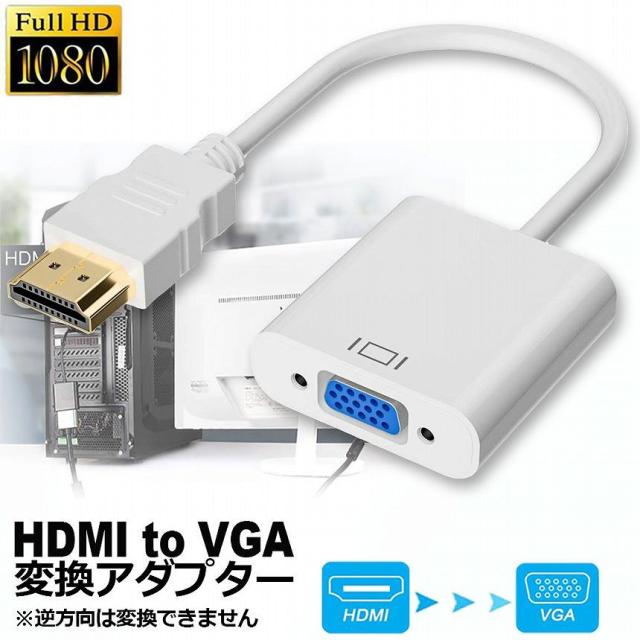 HDMI VGA 変換アダプター ホワイト hdmi vga変換ケーブル D-SUB 15ピンHDMI オス to VGA メス 1080P 高速伝送 小型 携帯便利 金メッキ 高耐久性 プロジェクター PC HDTV DVD対応