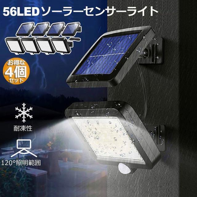 センサーライト ソーラーライト 56LED 4個セット 屋外 3モード 超高輝度 ソーラーライトモーションディテクター 5Mケーブル付き 防水 防犯ライト 自動点灯 屋外照明 庭 玄関 ガーデンライト 駐車場 停電緊急対策 防災ライト