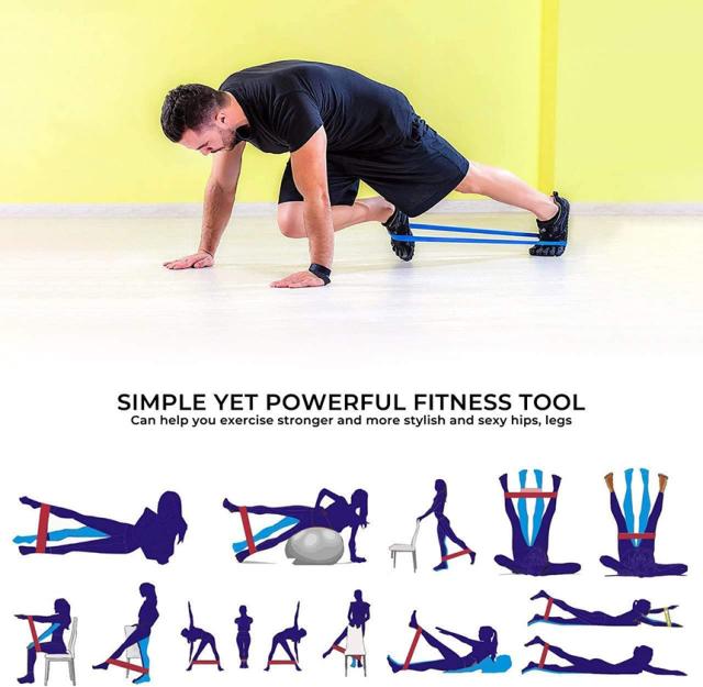 4つの異なる張力のトレーニングゴムセット