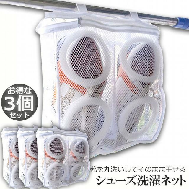 シューズ洗濯ネット シューズ用 3個セット 洗濯ネット 靴丸洗い シューズ ランドリーネット 靴用 スニーカー サンダル 上履き スリッパ 上靴 洗濯後そのまま干せる ホワイト そのまま干せます 型崩れ防止