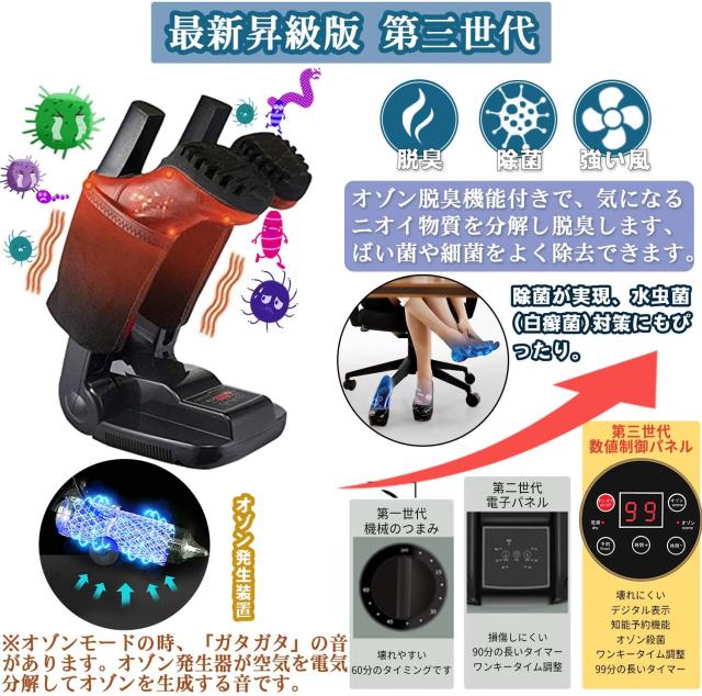 くつ乾燥機 靴乾燥機 折りたたみ式靴乾燥機 オゾン抗菌 消臭 水虫解消 タイマー 智能予約機能付き 折りたたみ式 収納便利 梅雨 臭い 対策 乾燥機 様々な靴を対応可 日本語取扱説明書付き