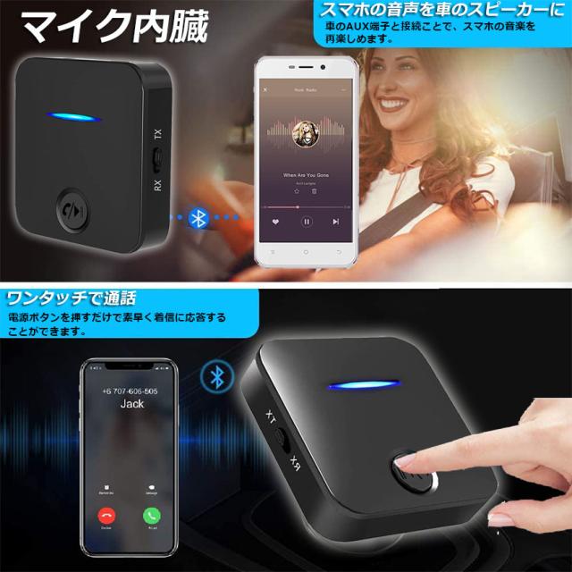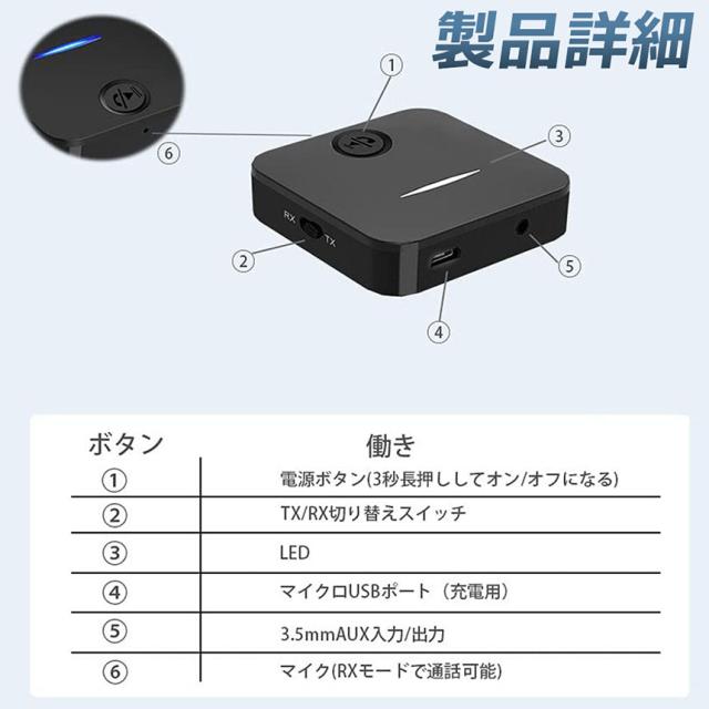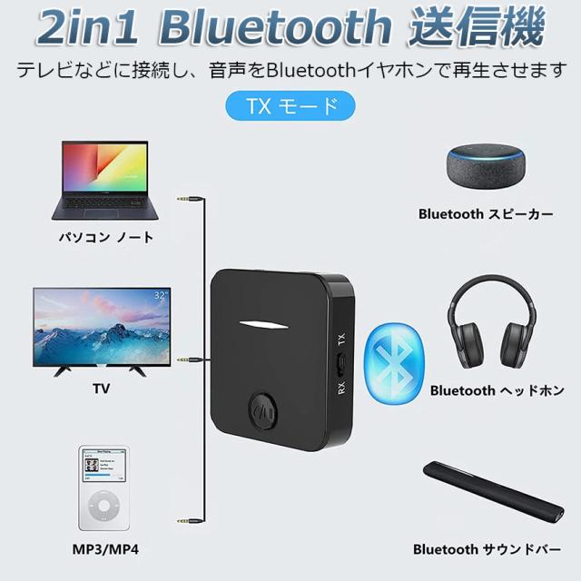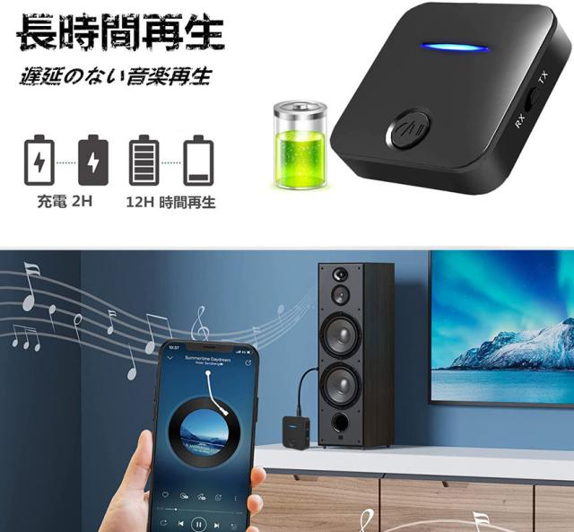 Bluetooth5.0 トランスミッター レシーバー 1台2役 送信機 受信機 充電式 無線 ワイヤレス 3.5mm オーディオスマホ テレビ TXモード輸出 RXモード輸入 音楽 送信機 受信機 ブルートゥースios iPhone Android 古いコンポ 車載AUX スピーカー等に適用 日本語説明書付き