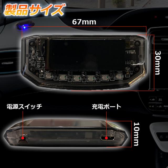 車用 カーセキュリティ ナイトシグナルデコ ダミー ソーラー充電 USB充電 車用 ライト ランプ 防犯 盗難防止 警告 ソーラー 配線不要 電池不要 太陽光充電 置くだけ 撃退LED センサー 防犯グッズ 汎用