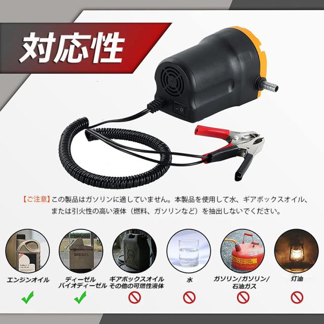【ご注意】この製品はガソリン/ガソリンには適していません。 このポンプを使用して、水、ギアボックスオイル、または易燃性液体(燃料、ガソリンなど)を抽出しないでください。
