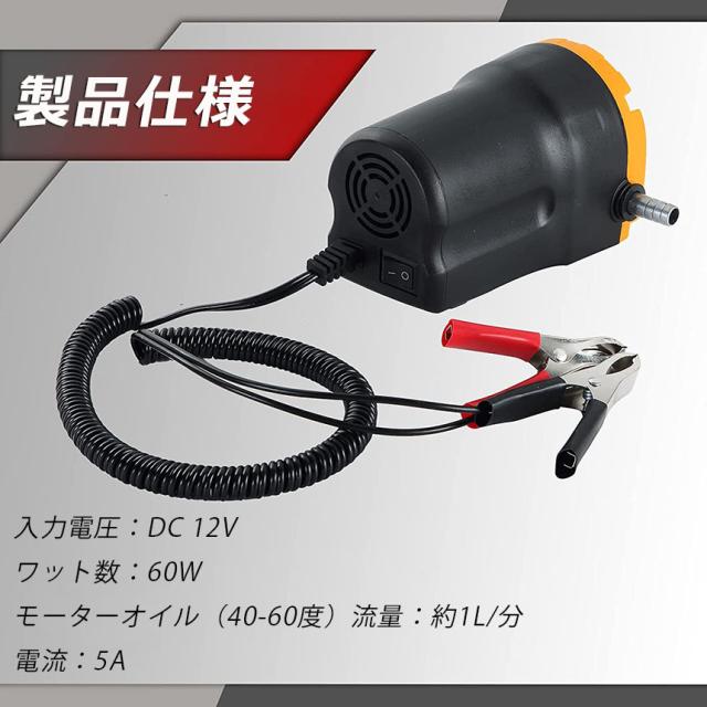 【商品仕様】: 入力電圧:DC 12V、ワット数:60W、電流:5A、モーターオイル(40-60度)流量:約1L /分