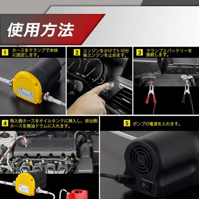 【商品仕様】: 入力電圧:DC 12V、ワット数:60W、電流:5A、モーターオイル(40-60度)流量:約1L /分【簡単な設置】インレットとアウトレットのホースを適切な位置に置き、電源クランプをカーバッテリーに接続してボタンを押すだけです。 このプロセスは非常に簡単で、エンジンをスムーズに実行するために自分で行うことができます。