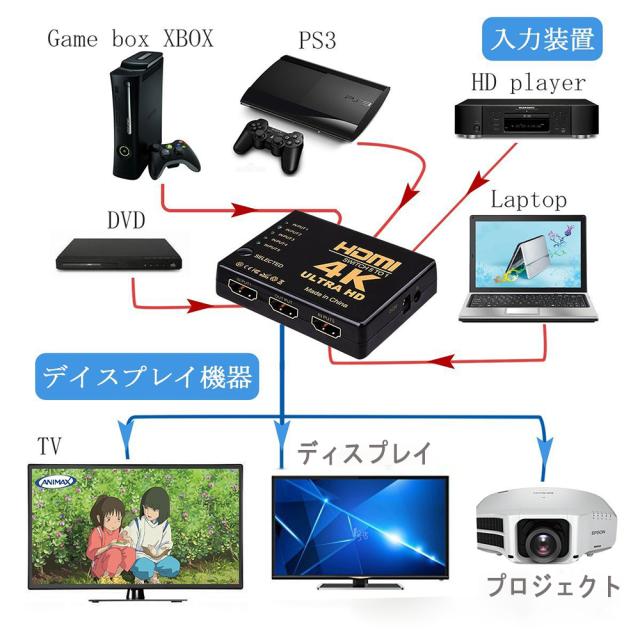 会議、学校、家庭ゲーム機、ホームシアター、店頭宣伝などの場面に欠かせませんです。ブルーレイプレーヤーやゲーム機などのHDMIに対応した機器を、