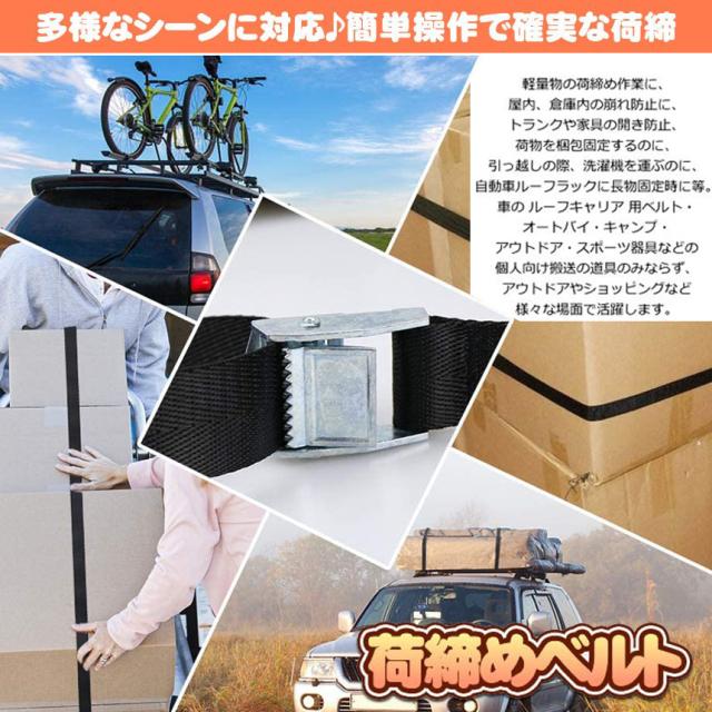 【幅広い用途】多用途 の ベルト として車の ルーフキャリア 用ベルト・オートバイ・キャンプ・アウトドア・スポーツ器具などの個人向け搬送の道具のみならず、近年発生の多い地震やゲリラ豪雨台風の 対策グッズ として会社や一般家庭では バイク・シャッター・物置・商品棚などの固定にもお勧めです。