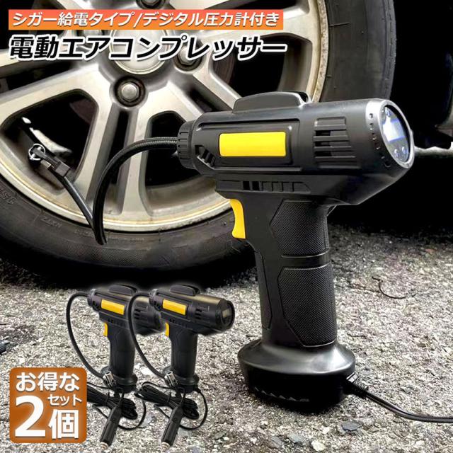 エアーコンプレッサー 小型 12V 電動 シガー給電式 エアコンプレッサー エアーポンプ コードレス 自転車 空気入れ 自動車 バイク ボール 電動空気入れ 自動車タイヤエアーポンプ コンプレッサー 電動 空気入 CDデジタル表示 お得な2台セット