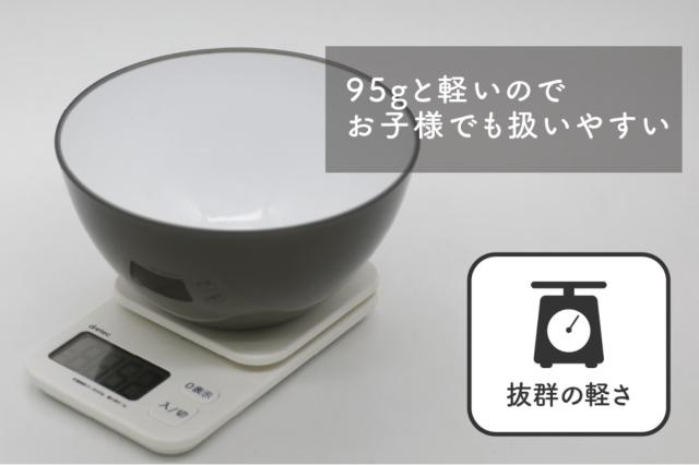 衝撃に強い素材なので誤って落としても割れにくく、ガラスやステンレスと比べて軽いので、小さなお子様でも扱いやすいです。