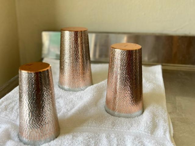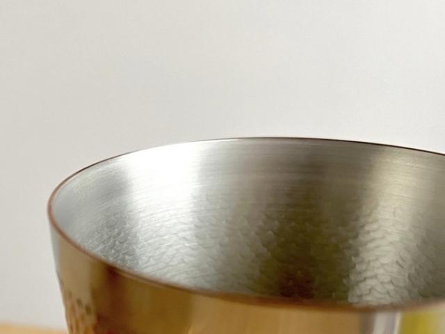 銅は、熱伝導率が良いため、冷たいものを注ぐと瞬時に外側まで冷たさが伝わります。 カップに口をつけたときのひんやり感はたまりません!