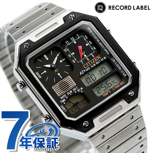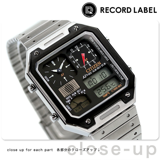 シチズン コレクション レコードレーベル サーモセンサー クオーツ 腕時計 メンズ 流通限定モデル クロノグラフ CITIZEN RECORD LABEL JG2126-69E アナデジ ブラック 黒