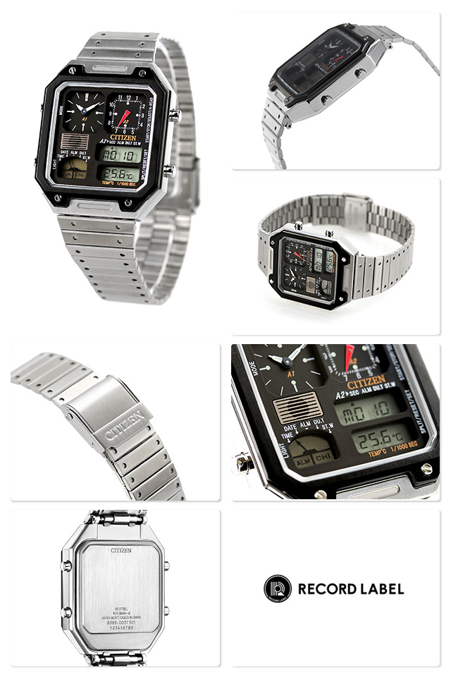 正規品 7年保証キャンペーン 送料無料 シチズン コレクション レコードレーベル サーモセンサー 流通限定モデル クロノグラフ クオーツ メンズ 腕時計 JG2126-69E CITIZEN RECORD LABEL THERMO SENSOR アナデジ ブラック 黒 ◆CITIZENの多彩な個性を記録(Record)し続けるインディーズスピリットを持ったウオッチ 「RECORD LABEL」。1982年、温度センサー搭載のコンビネーションウオッチとして登場し、個性豊かなデザインで多くのファンに愛された「サーモセンサー」を現代版としてアップデートしました。別体ベゼルやバンドの飾り穴が、コンビネーションクオーツのレトロな表情を強調。武骨でありながらも洗練されたデザインは愛着が湧くこと間違いなしの1本です。カジュアルスタイルにはもちろん、ジャケットやコートにも合わせやすくシーンを問わずお使いいただけます。プレゼントにもおすすめです。 発売日:2022年10月発売