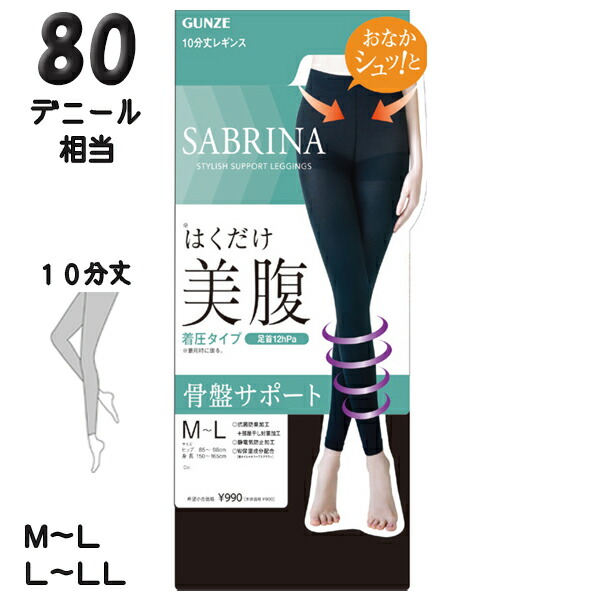グンゼ サブリナ レギンス 10分丈 美腹 着圧 抗菌防臭 保湿 骨盤サポート 80デニール M-L/L-LL | ナイロン レディース 補整レギンス インナー SBL503 GUNZE SABRINA