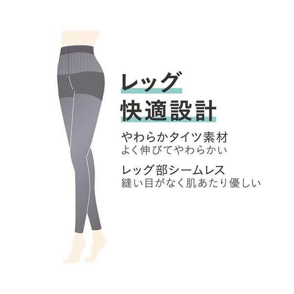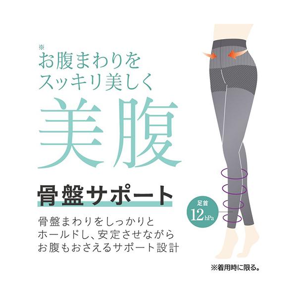 SABRINAでは初となるレギンスライン!年齢を重ねるにつれ、気になるお腹まわり、お尻まわりの体型変化に対し、はくだけで美しく体型補整させる『補整機能付レギンス&ボトム』を新提案。SABRINAならではの、快適なはき心地でデイリーに着用しやすく、気軽にスタイルアップ!骨盤を安定させながら、ぽっこりお腹もおさえるサポート設計。ソフトな肌触りのタイツ素材+レッグ部シームレス設計なので、快適なはき心地です。足首12hPaの引き締め着圧設計で脚もキュッと美しく。