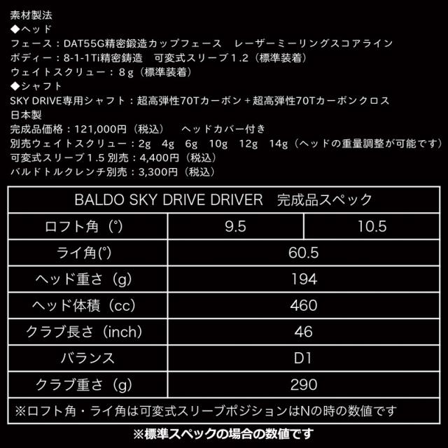 バルド SKY DRIVE DRIVER 可変式 SKY DRIVE468MAX純正シャフト装着品 スカイ ドライブ ドライバー 【カスタム】【新品】 2022 オリジナルシャフト フジクラ FUJIKURA 地クラブ