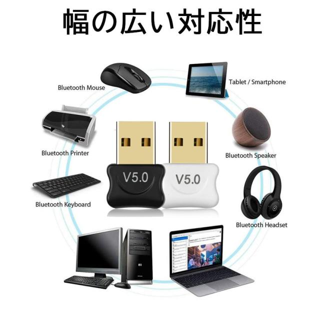【Bluetooth 5.0】伝送距離0-10m、Bluetooth 4.0バージョンの伝送よりも高速で安定しています。【マルチデバイス接続のサポート】コンピューターと、携帯電話、タブレット、マウス、キーボード、ブルートゥースヘッドセット、ブルートゥーススピーカー、ゲームパッド、プリンターなどのその他のBluetooth対応デバイスとの接続を実現します。