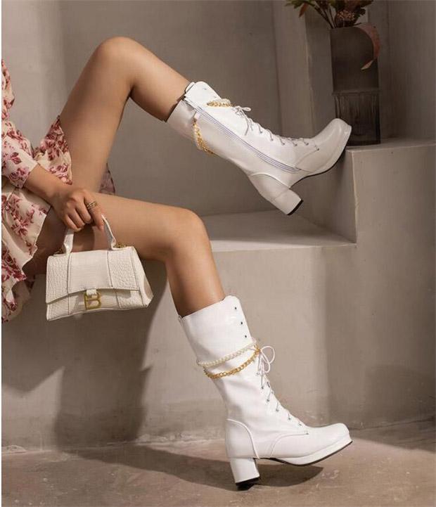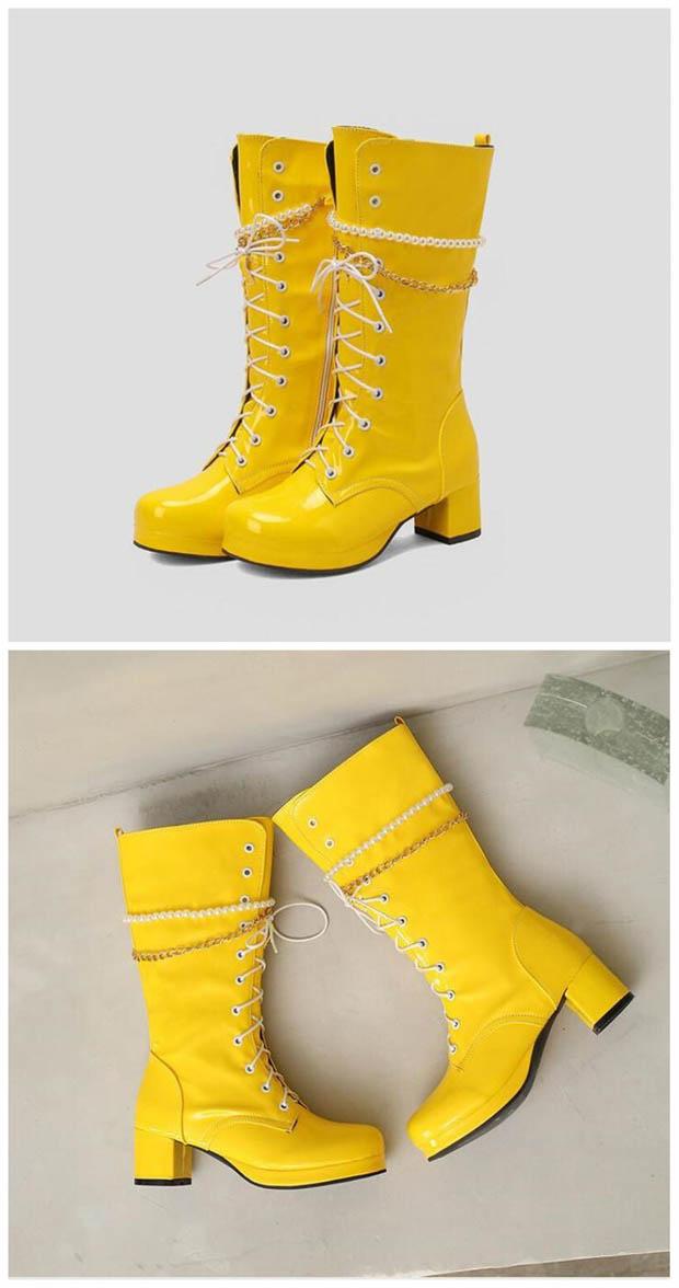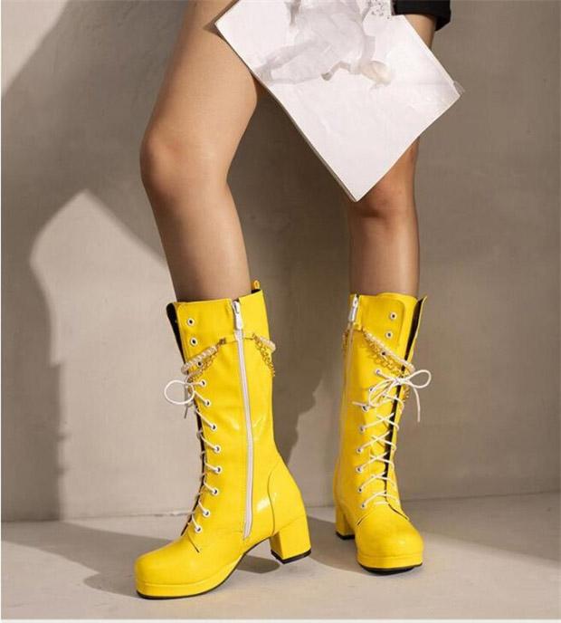 ロングブーツ 編み上げ ヒール5.5センチ 太ヒール ブーツ 美脚 カジュアル レディース シューズ 靴 秋 冬 春 20代 30代 40代 白 緑 イエロー オレンジ 赤 紫 黒 大きいサイズ 小さいサイズ20.0 21.0 21.5 25.5 26.0 26.5 27.0 28.5 di901c0c0c9