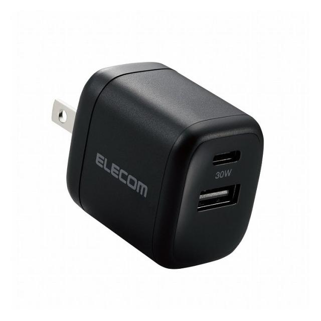 エレコム USB Type-C 充電器 PD 対応 最大出力30W タイプC タイプA GaN 小型 軽量 Type C USB-C コンセント ブラック MPA-ACCP30BK(代引不可)【送料無料】