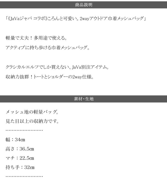 ★《JaVaジャバ コラボ》ころんと可愛い。2wayアウトドア巾着メッシュバッグ★