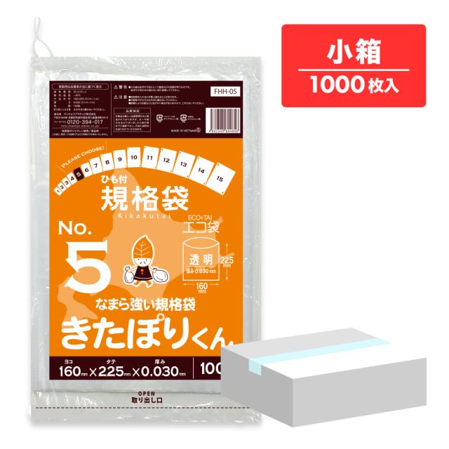 【小箱販売】FHH-05kobako 北海道規格 ひも付 規格袋 5号 0.030mm厚 透明 100枚x10冊 きたぽりくん 食品検査適合 RoHS指定