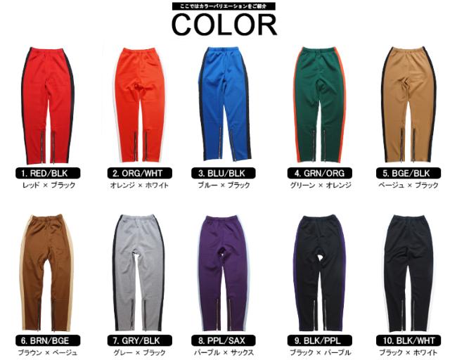 トラックパンツ サイドライン 裾ZIP メンズ レディース テーパード ストレッチ 10色 Noughties Denim (ノーティーズデニム) [track01]