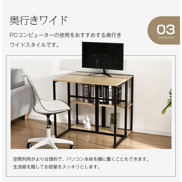 【2つラック付きで組み合わせ可能】ほしいものにすぐ手が届く多段ラックが付いています。また2つのラックはそれぞれ使用できるにもかかわらず、デスクといろんな形に組み合わせて使用にも大活躍です。