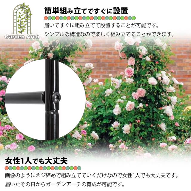 工具不要でカンタンに組立て フラワーアーチ ローズアーチ ガーデンアーチ バラ ガーデニング用品 おしゃれ 庭園 花立て 花台 花壇 ホワイト ブラック 薔薇アーチ