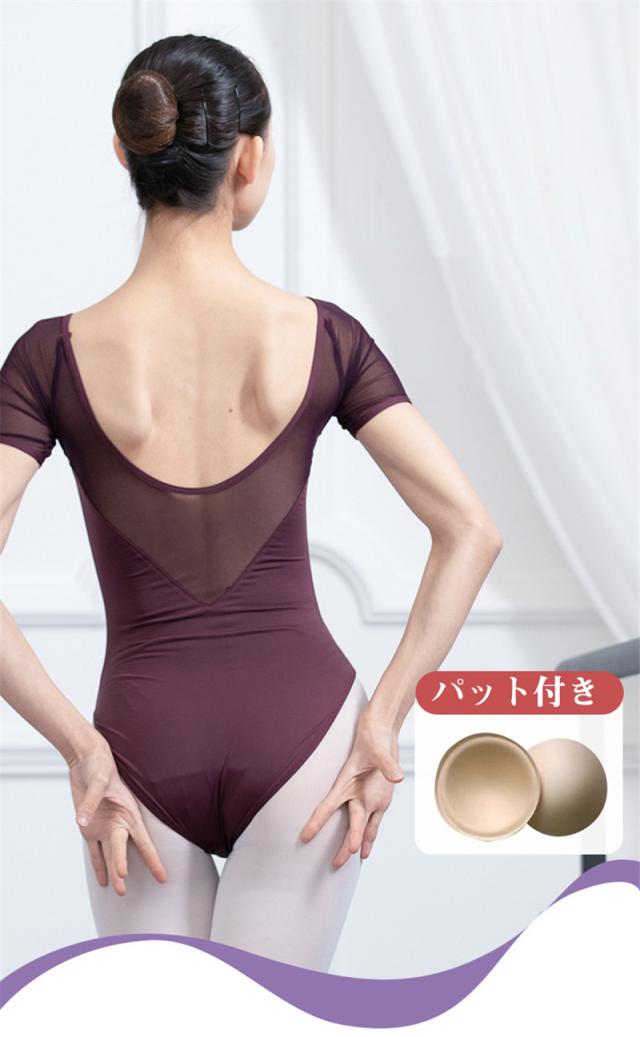バレエ レオタード 大人用 レース ジュニア パット付き 新体操 バレエ用品 オールインワン 半袖 スカートなし 練習用 ダンス