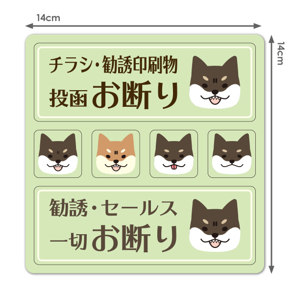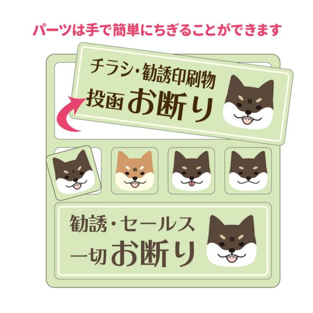 サインマグネットステッカー ゆうパケット対応210円〜2メッセージセット 緑 黒柴 柴犬 チラシ・勧誘印刷物投函お断り 勧誘・セールス一切お断り 玄関ドアお知らせマグネット