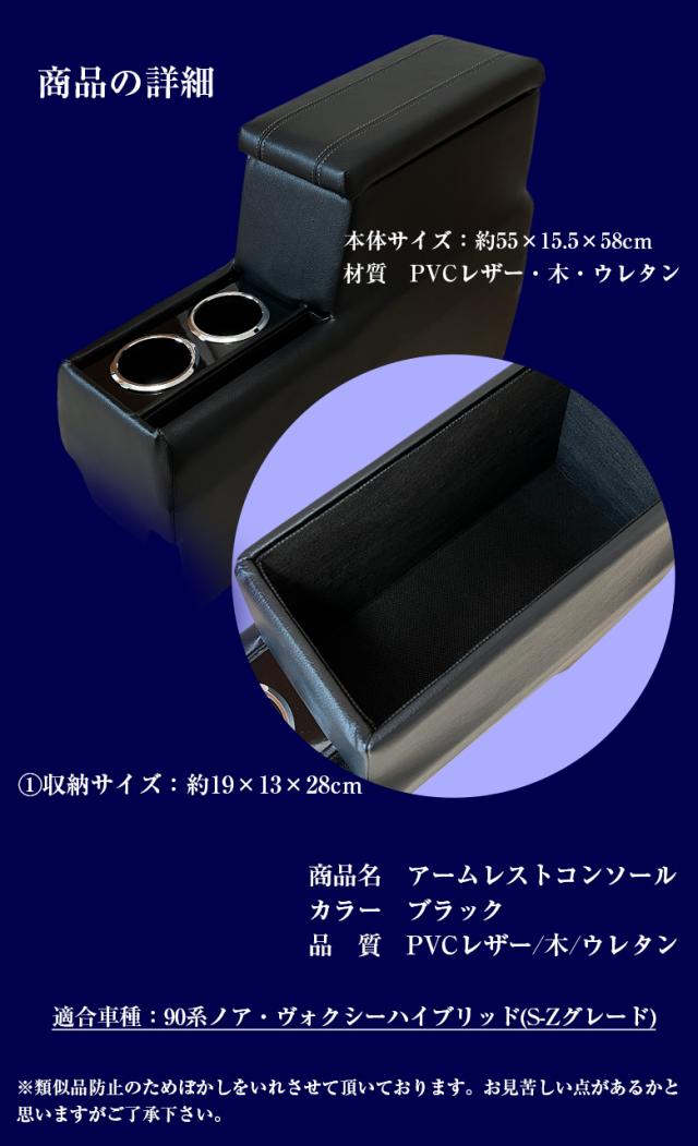 新型 ヴォクシー ノア 90系 コンソールボックス アームレストコンソール ハイブリッド車 | wao コンソール アームレスト アクセサリー カスタム パーツ ドレスアップ カスタムパーツ 内装 黒 ブラック 収納 ドリンクホルダー コンソールボックス