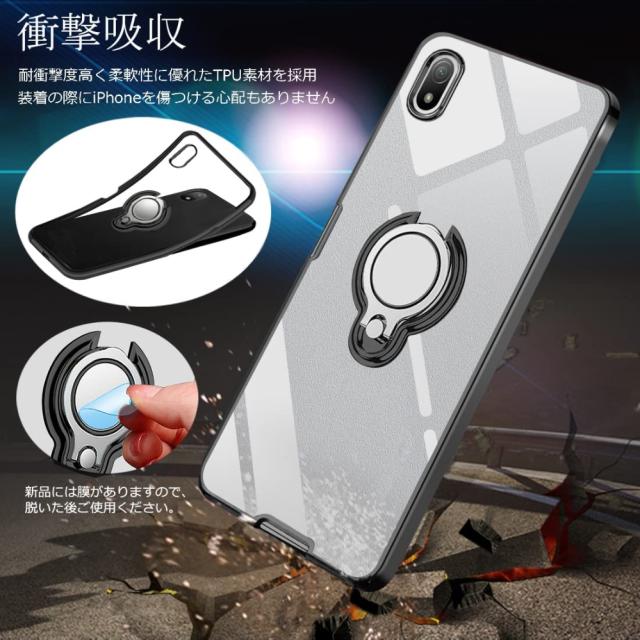 Sony Xperia Ace III SO-53C SOG08 ケース リング クリア 透明 メッキ加工 TPU シリコン 耐衝撃 薄型 スタンド機能 360回転 マグネット式車載ホルダー ストラップホール付き カバー