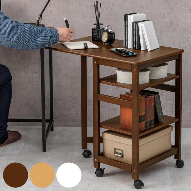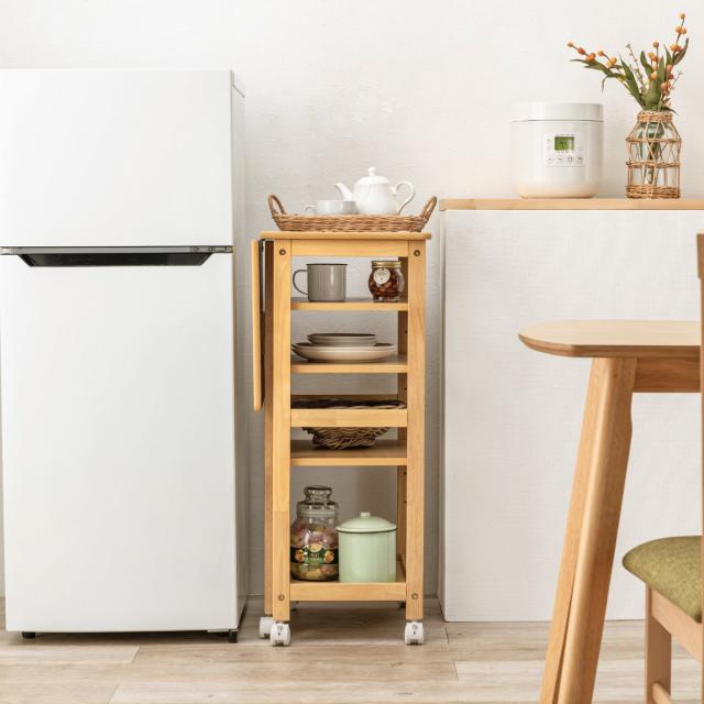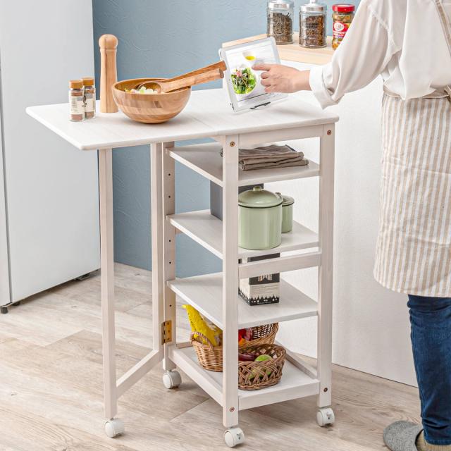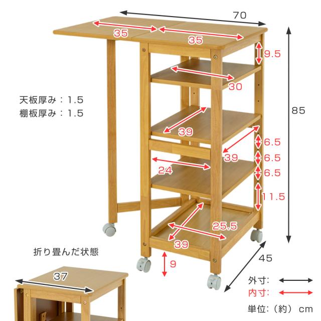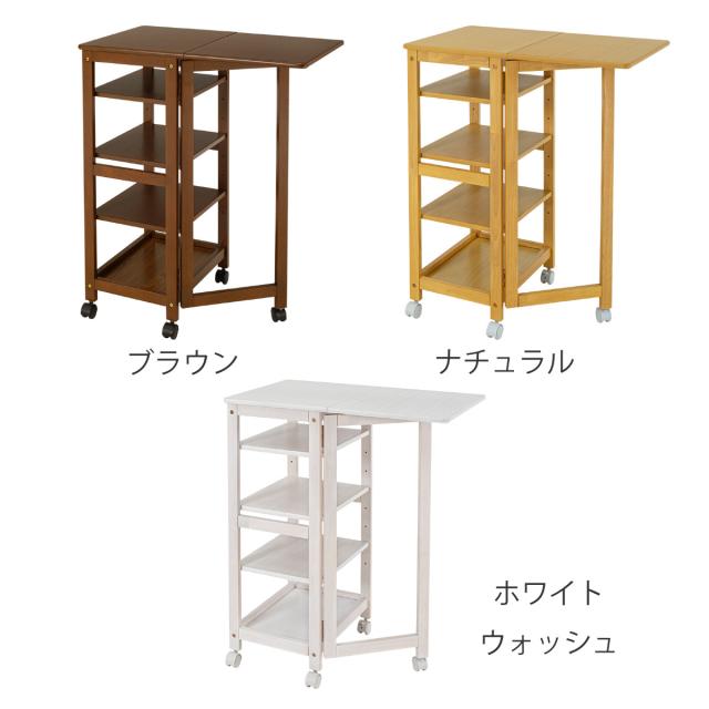 キッチンワゴン 5段 バタフライ天板 幅37・70cm ( キッチン収納 収納 ラック 収納ラック キャスター付 キッチン 片バタ 収納ワゴン ブラウン ナチュラル ホワイトウッド 天然木 )