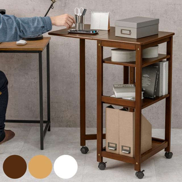 普段はコンパクトな収納棚として使用でき、必要な時だけサッと天板を広げてワイドな作業スペースを展開することができます。難しい操作はいらず、簡単に天板の折り畳みができる設計です。