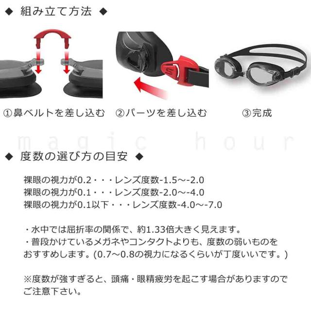 見えないから心配、そんな不安を解消してくれる度付きのスイムゴーグルです♪ 左右同じ度数のレンズ1個ずつ+専用ベルトパーツのかんたん組み立てセット!