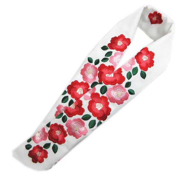 半衿 半襟 刺繍 金糸入り 白色地椿 日本製 ロング 振袖 成人式 卒業式 袴 着物 女性用 レディース 長め 長尺 振袖用 はかま