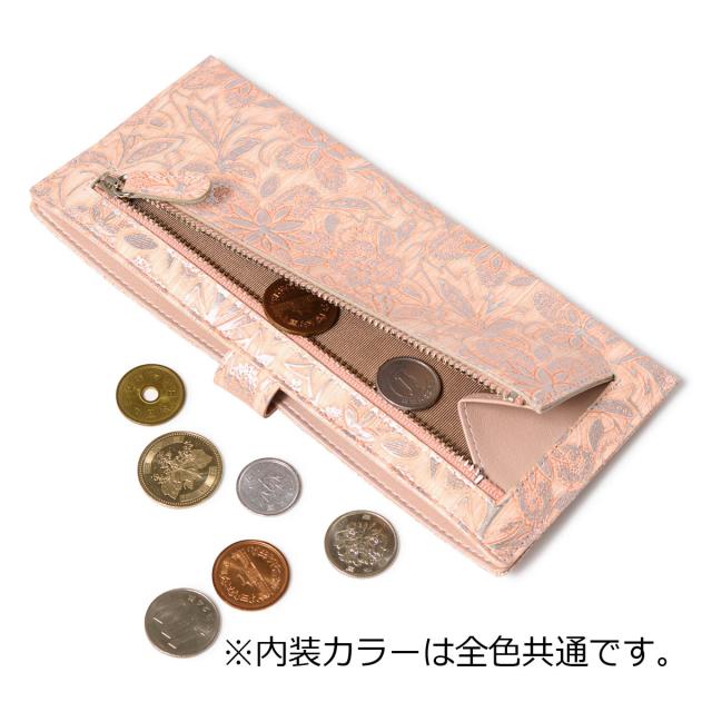 【レビュー投稿で+5%還元】アルカン 長財布 薄型 本革 レディース クレア 1412-708 日本製 ARUKAN 花柄 パール 型押し エンボス 牛革 レザー 開運 一粒万倍日