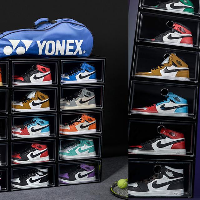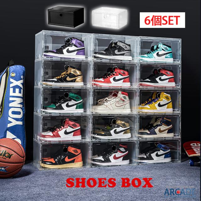 6個セット 室内 シューズボックス スニーカー 靴 収納 シューズケーズ お洒落 クリア ブラック ハイカット対応 新作 インテリア 収納グッズ
