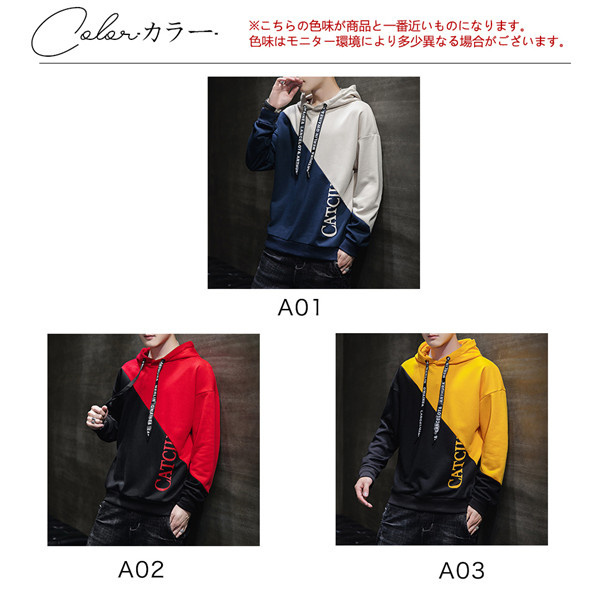 数量限定 セール中 パーカー メンズ フード付き 長袖 プルオーバーパーカー スウェットパーカー 切り替え 配色 トップス 薄手 秋服 ゆったり シンプル カジュアル