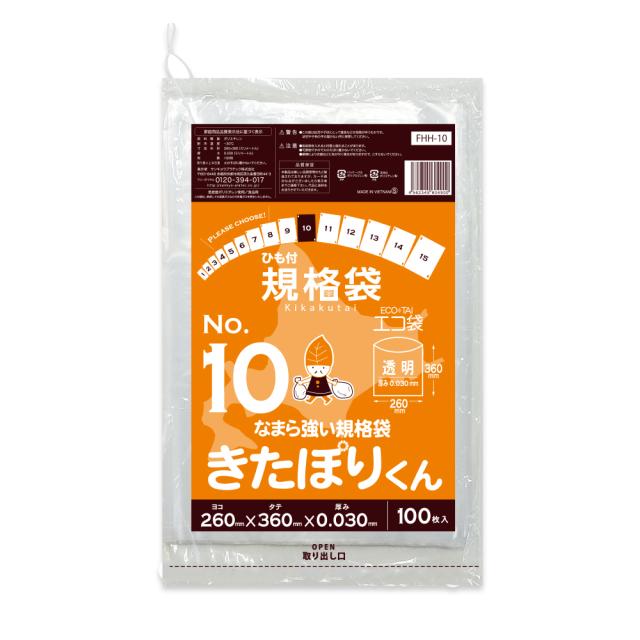 【バラ販売】FHH-10bara 北海道規格 ひも付 規格袋 10号 0.030mm厚 透明 100枚 きたぽりくん 食品検査適合 RoHS指定