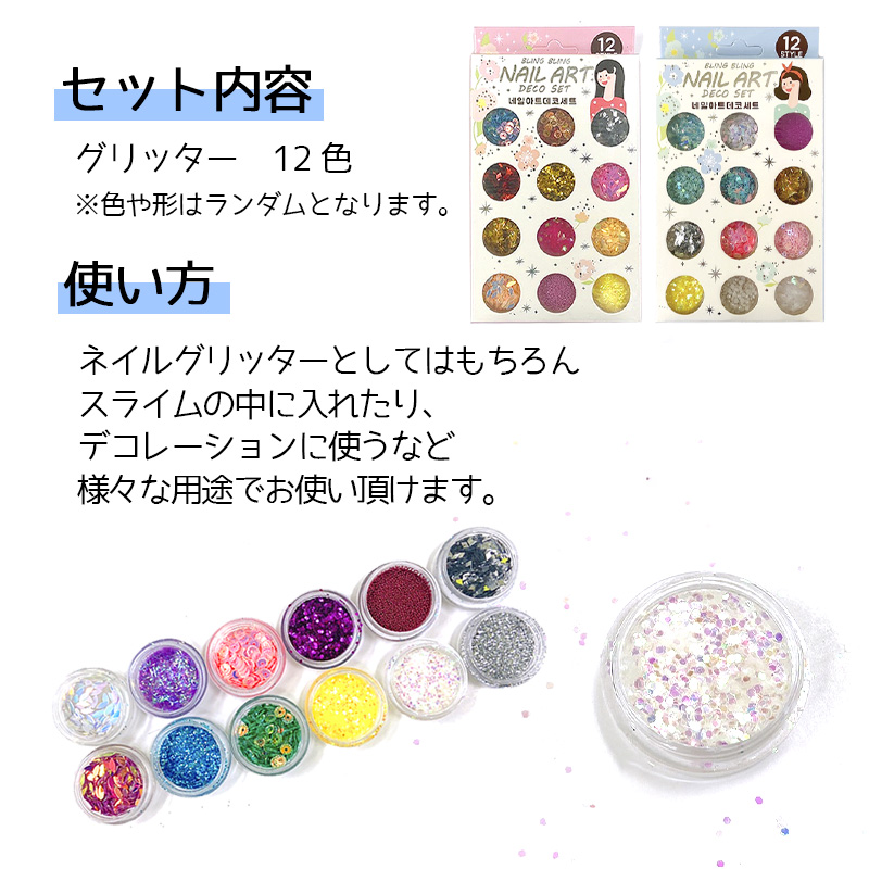 【選べる2種】韓国 カラフル グリッターラメ 12種セット ランダム ネイル スライム ホロ ハンドメイド デコ 素材 セルフネイル プレゼント 雑貨 韓国 国内発送