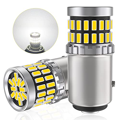 12V-24V車用 S25 LEDダブル球 ホワイト テールランプ/ブレーキランプ BAY15D P21/5W 180度段違い ストップランプ LEDバルブ 汎用 超高輝度 48連3014SMD 6000-6500K 白 ( 2個入り)