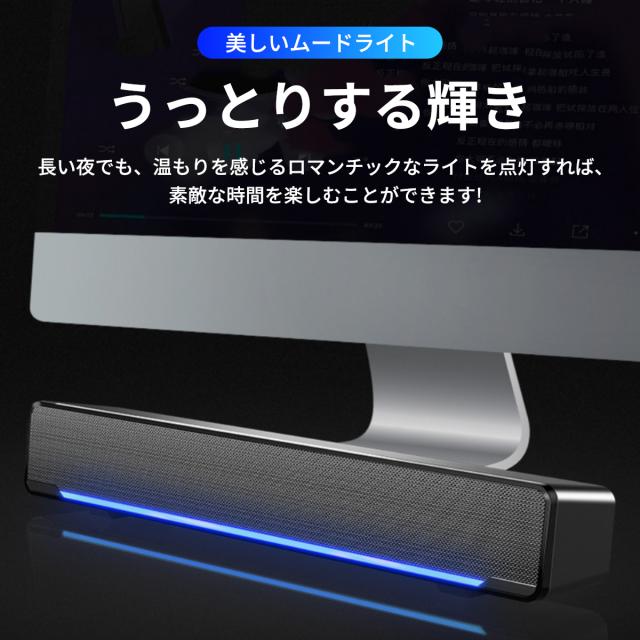接続 高齢者 スマホ ケーブル ランキング パソコン ゲーム ライト 音量コントローラー 重低音 高品質 高音質 重低音 サウンドバースピーカー ライト点灯でムード満点 アンプ内蔵スピーカー USB電源 PCスピーカー 3.5mm ステレオミニプラグ接続 パソコン テレビ 音量アップ アクティブスピーカー 小型
