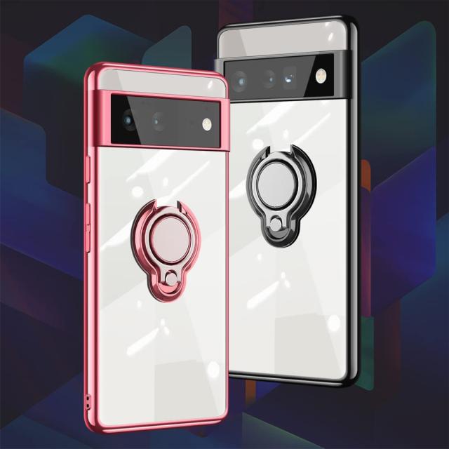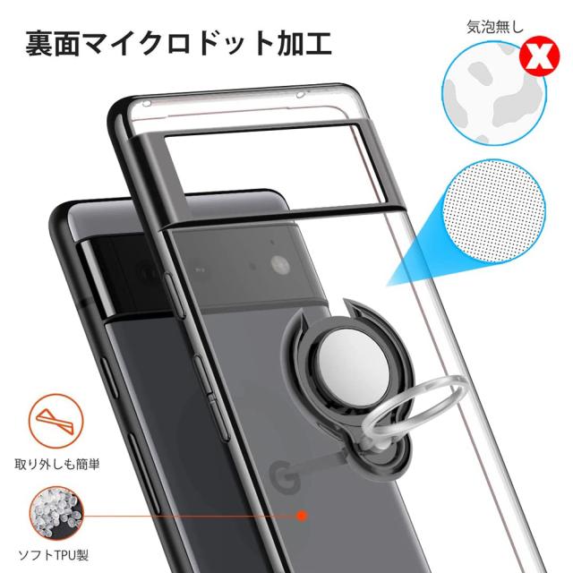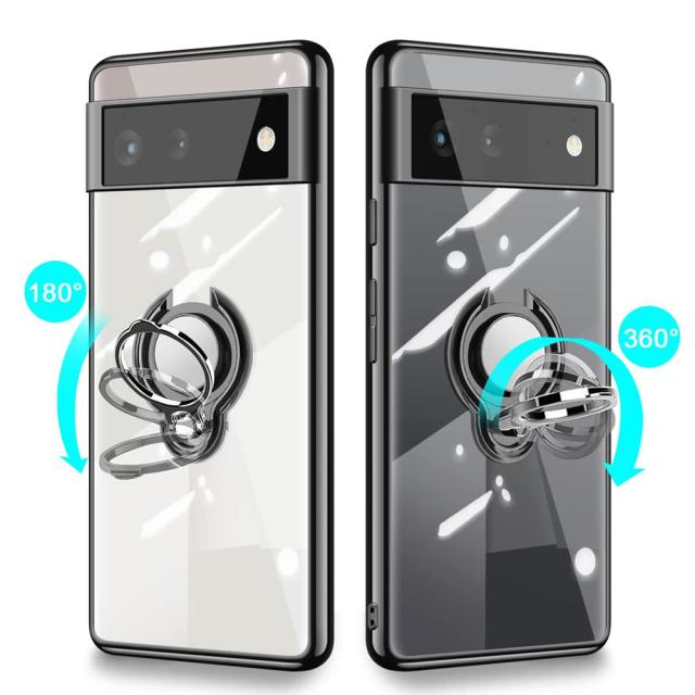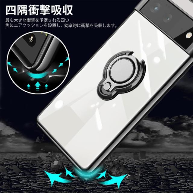 Pixel6a ケース リング付き TPU メッキ加工 背面クリア Pixel 6a 衝撃吸収 車載ホルダー対応 Google ピクセル 6a カバー 耐衝撃 スタンド機能 スマホケース スマホカバー