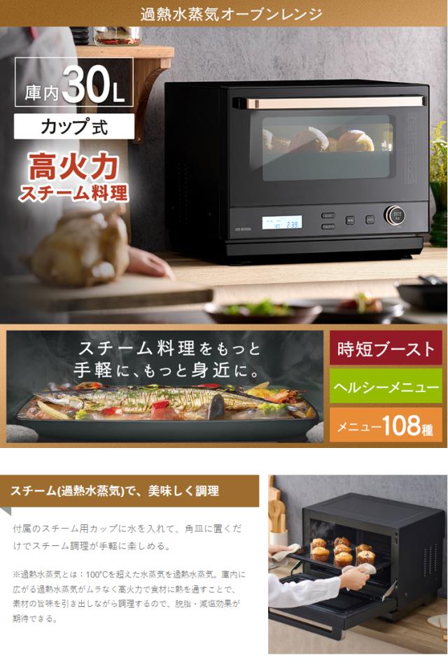 オーブンレンジ 電子レンジ 本体 30L 時短ブースト スピードあたため 時短メニュー タイパレンジ スチームオーブン グリル レンジ フラットテーブル 時短 タイパ 黒 ブラック スチームオーブンレンジ カップ式 MO-FS3001-B アイリスオーヤマ *