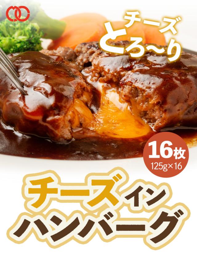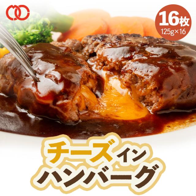 【送料無料】濃厚チーズがたっぷり!チーズ in ハンバーグ パテ 冷凍 セット ギフト 125g×16枚 お取り寄せグルメ 牛肉 お肉 肉 内祝い プレゼント BBQ バーベキュー 食材