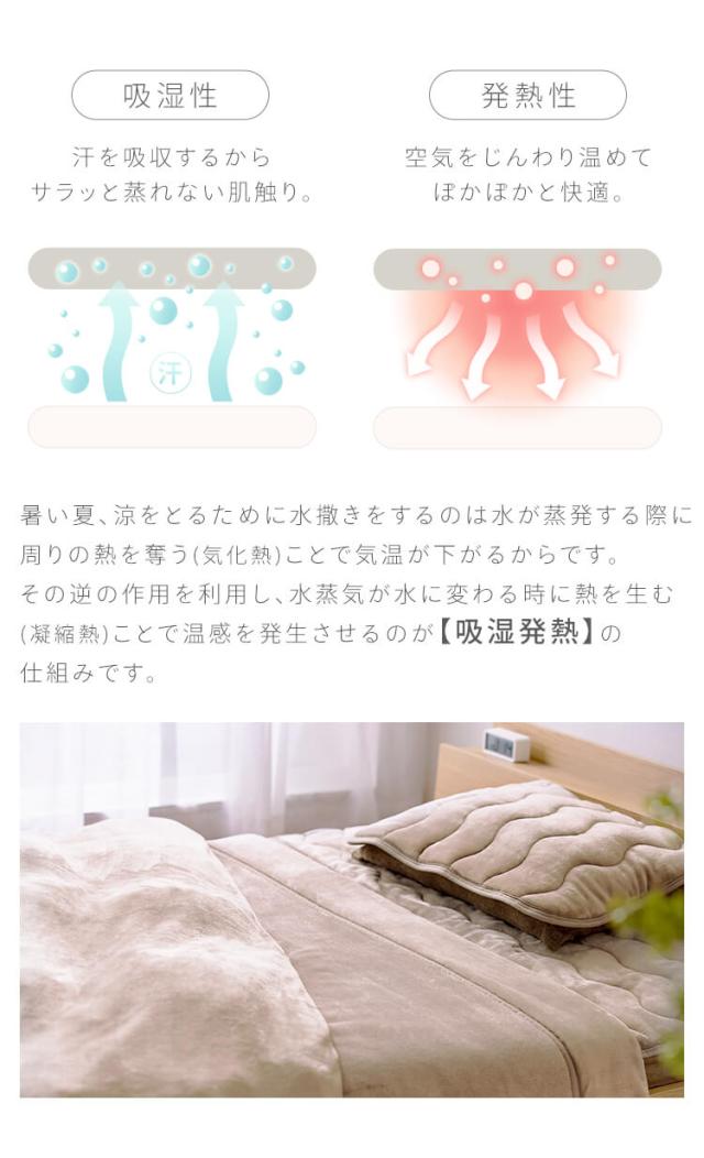 発熱性・・・空気をじんわり温めてぽかぽかと快適。