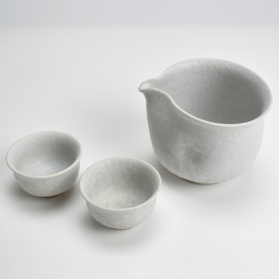 伝統ある滋賀県信楽焼の酒器セットです。信楽の土は耐火性に富み、可塑性とともに腰が強いといわれています。大物だけではなく、小物づくりにおいても細工しやすい粘性がある良質な土を使用し、チタン釉で仕上げてマットな優しい色合いを表現しています。片口から無色透明なお酒が静かに注がれると柔らかな白色がゆらゆらと揺れて広がっていくように見え、つい見入ってしまいます。一つ一つ丁寧に作られた酒器セットで、ゆったりとしたお酒の時間をお楽しみください。